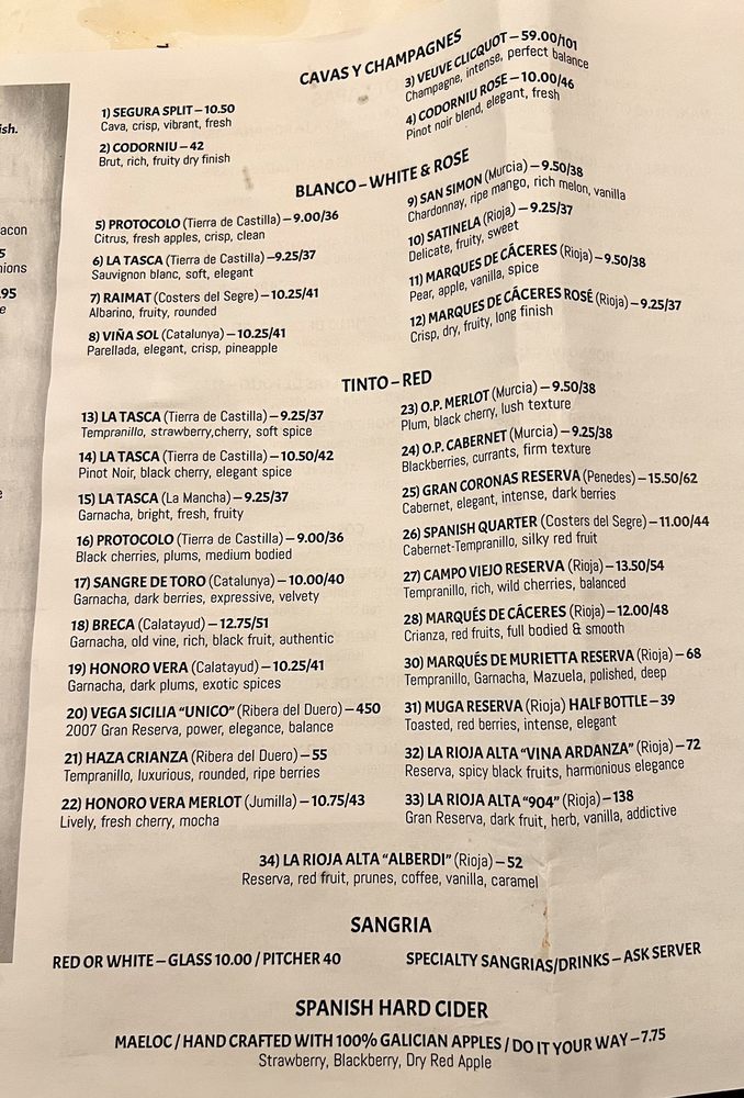 La Tasca Restaurant Menu (2025 Update)